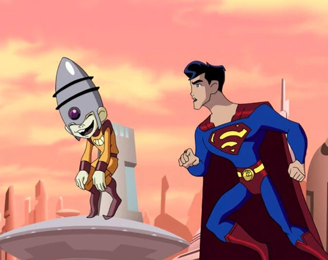 Brainiac 5 and Superman are in a coffee/donut shop in New Metropolis. A tray of muffins suddenly sprout legs and heads and jump out of their pan, disrupting the other customers. They go outside to see the storefront now has eyes and a smiling mouth, and then it starts literally raining cats and dogs. It turns out that it's not an extremely advanced being with tremendous power, as Brainy speculates, but a child dressed in orange and purple with a big helmet, jetting a magenta fire from his fingertips, announcing "This is so cool!" Brainy and Superman fly towards the source of the magenta light. He's standing on a track in front of an oncoming train, but before Superman can help him, the child gestures at the train and it sprouts wings and flies off. Brainy thinks he's seeing things. Superman uses his super-breath to freeze the train from flying away, and the child is impressed with his magic. Brainy informs the child that there's no such thing as magic - the laws of physics are quite clear. The child proceeds to prove there is such a thing by turning Brainy into a Jack-in-the-Box. Brainy is not amused. Superman introduces himself to the child, whose name is Zyx. Superman asks Zyx if he can turn the buildings back to normal (they had been given faces), and Zyx reluctantly agrees, even changing Brainy back. Superman suggests taking him back to Legion HQ, but Brainy thinks that would be a very bad idea. At the Clubhouse, Triplicate Girl is playing tri-chess with herselves when Zyx pops in and enchants the game pieces, followed closely by Superman and Saturn Girl. She wants him to stay in one spot long enough so that she can run a mind-probe to see where he's from, but Zyx tells her that his home is just rules, rules, rules, and he's having more fun zipping around the Clubhouse. He snaps his fingers and her earrings grow to huge size, dragging her to the ground. Superman tries to catch him, but Zyx causes his cape to wrap around him like a bow. Brainy's exhaustive scans show the source for Zyx's powers is inconclusive, but Phantom Girl suggests it really is magic. Her mom once told her about a Sorcerer's World. Brainy reiterates that there is no such thing as magic, so Zyx causes a chicken to appear above his head, which drops an egg and lands right on Brainy. He thinks it might be a good idea after all to call Phantom Girl's mother. She tells her daughter that if the child really is from Zarok, they're in trouble. Since Zarok severed relations with the United Planets centuries ago, they can't call his people to pick him up, so they might have to wait it out. Meanwhile, Lightning Lad watches a holo of "Comet" and "Cupid", the two pets of Drax who were left behind when Drax disappeared. It took a week for the Science Police to capture them and put them in the New Metropolis Zoo, but their cages have malfunctioned. Bouncing Boy declares that it's time for the big Legion of Super Heroes Roundup. Zyx wants to join in, but Lightning Lad tells him the Legion will handle it. Saturn Girl, Superman, and Bouncing Boy quickly capture the first one, but Brainy tells Superman that the beasts' cages at the zoo have not malfunctioned after all. Zyx admits that he might have let them out. Declaring that this is a job for Super-Zyx, he conjures up a Superman suit and rides the other beast like a bull rider. Saturn Girl commands it to sleep, and Superman picks it and places it with the other back in the cage. Superman tries to reason with Zyx, who wants to do that again, but Lightning Lad is more headstrong and tells him that if he can't follow the rules, he'll have to go home. This sets Zyx off, declaring that nobody can make him go home. He turns Lightning Lad into a rat and himself into a giant cat.