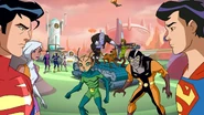 After fighting a Space Squid, Lightning Lad accepts an invitation to join an older, "cooler" team The Light Speed Vanguard. Once there, however, Lightning Lad realizes these new heroes aren't exactly what they seem. Triplicate Girl and the team end up battling the rival team.